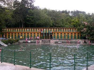 Thermalbad, Bad Fischau, Bagno termale protetto a Bad Fischau-Brunn, Austria.