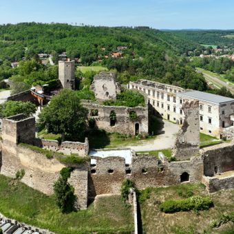 La fortezza in pietra si erge sopra il fiume Kamp, con mura rimanenti e un'ala rinascimentale di tre piani adiacente alle strutture medievali.
