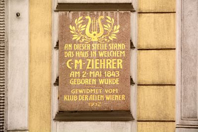 Gedenktafel für Carl Michael Ziehrer, Gedenktafel am Gebäude Westbahnstraße 4, Wien Neubau