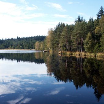 Il Edlesberger Teich si estende su 14 ettari a un'altitudine di 876 metri, circondato dalle fitte foreste della regione Waldviertel.
