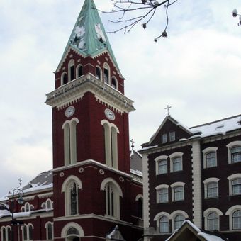 La struttura attuale, completata nel 1914, ha sostituito due chiese precedenti nello stesso sito, con la prima chiesa cattolica costruita nel 1853.