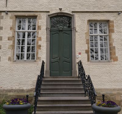Il Castello Egmont sorge nel Parco Egmont, con elementi medievali restaurati tra cui una sala dei cavalieri e una scala in stile rococò.