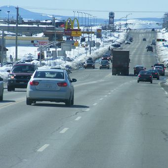 La città mantiene collegamenti stradali con Quebec City e gestisce un aeroporto locale per il trasporto di residenti e visitatori.