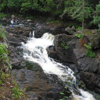 Il fiume compie una svolta improvvisa attraverso una faglia nello Scudo Canadese, creando una sequenza di rapide e pozze nella gola.