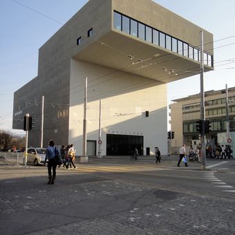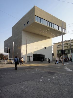 L'edificio, progettato dall'architetto zurighese Jean-Pierre Dürig, presenta una struttura geometrica angolare nel centro di Friburgo.