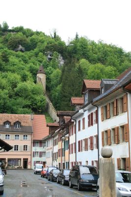 Fortifications, fortifications embracing the old town of Saint-Ursanne in the canton of Jura, Switzerland