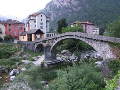 Ponte sulla Maggia, stone arch bridge over the Maggia in Bignasco in the canton of Ticino, Switzerland
