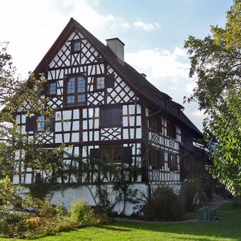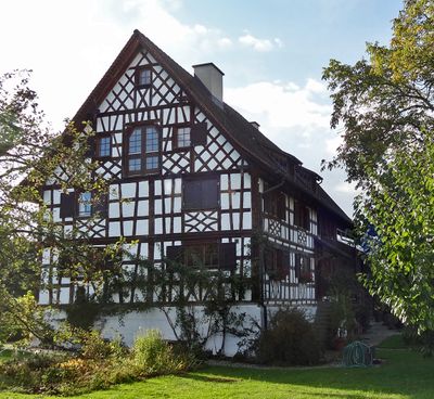 Farmhouse, timber-framed house in Scherzingen in the canton of Thurgau, Switzerland