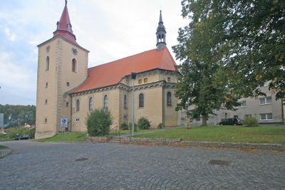 La parrocchia medievale cessò le operazioni durante le guerre hussite ma riprese la sua amministrazione spirituale nel XVI secolo, mantenendo registri dal 1718.