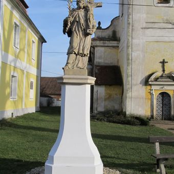 Statue of Saint John of Nepomuk in front of church, statue in Dolní Lukavice, Czech Republic