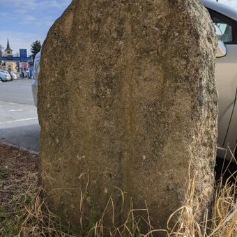 Mezník, kamenný mezník na návsi u autobusové zastávky