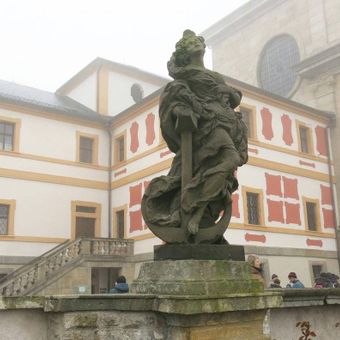 Socha Blahoslavení chudí duchem na balustrádě špitálu v Kuksu