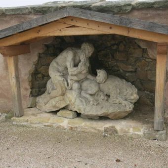 Socha Polyfona nad bránou do zahrady špitálu v Kuksu