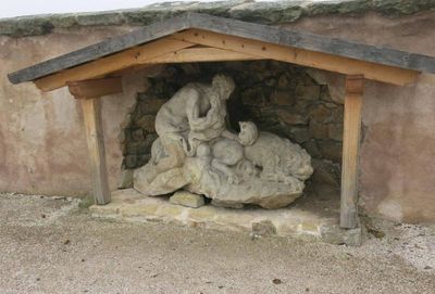 Socha alegorie Zoufalství na terase špitálu v Kuksu