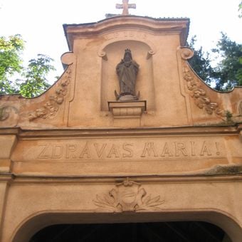 Socha Panny Marie na dolním portálu krytého schodiště ke klášteru v Nové Pace