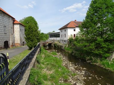 Most přes Mastník od zámku k továrně čp. 21 v Kosově Hoře