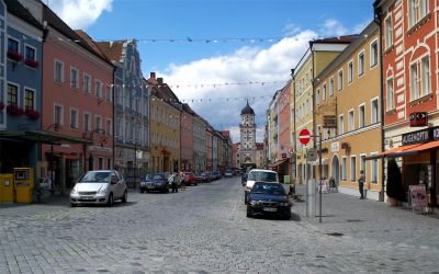 Il Vilshofener Zollhaus, storica dogana sulle rive del Danubio, rappresenta il ruolo secolare della città nella regolazione del commercio fluviale.