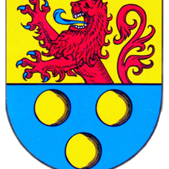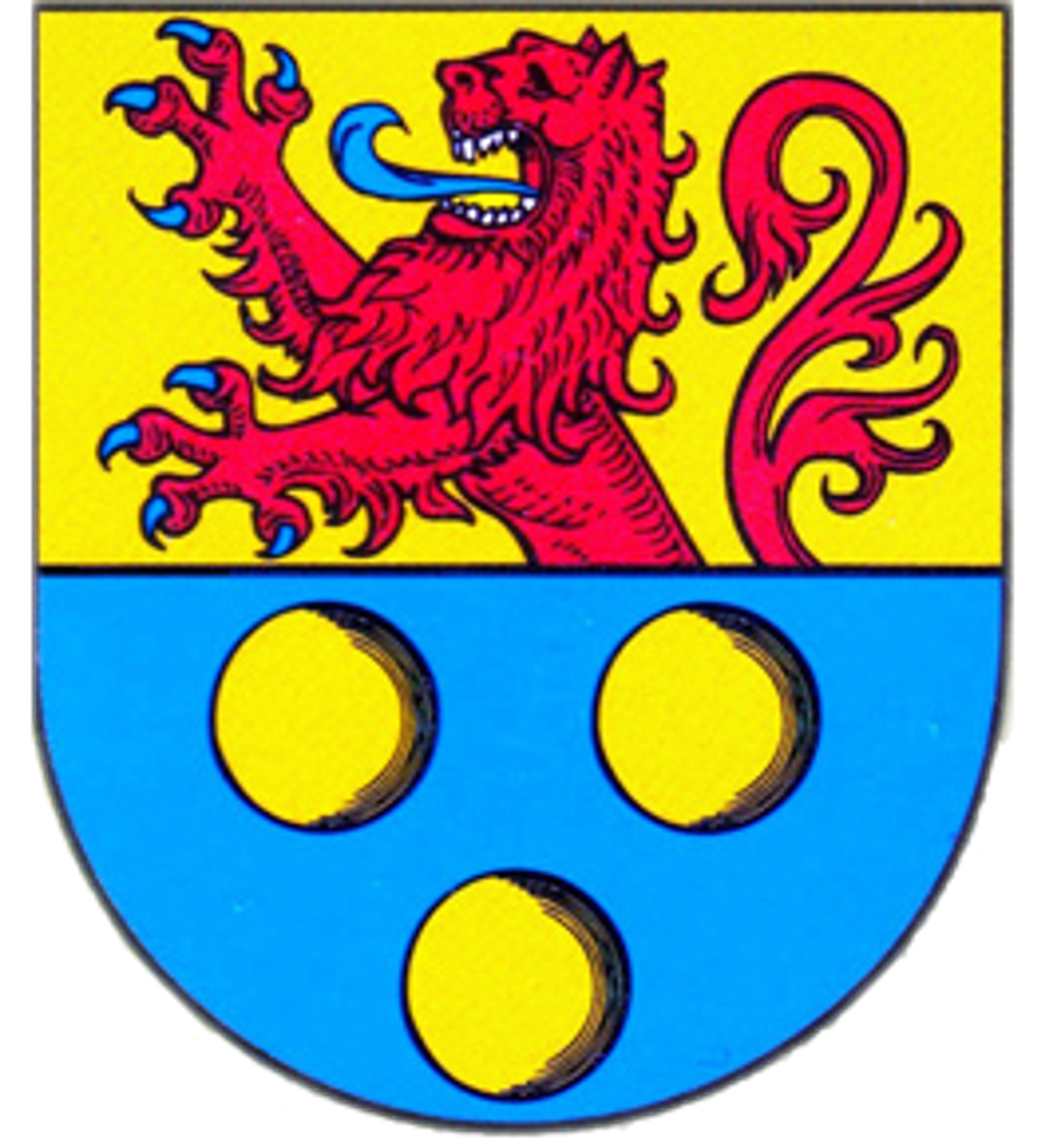 Lo stemma locale mostra il leone dei Conti di Katzenelnbogen insieme a tre monete d'oro che fanno riferimento a San Nicola di Myra.