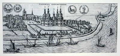 I resti del Castello di Tönning sorgono su un terreno elevato vicino al fiume Eider, con mura di terra che sostenevano strutture in legno.