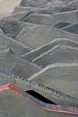 Il memoriale consiste in 96 lastre di ferro disposte davanti al palazzo del Reichstag, che mostrano nomi e date dei membri del parlamento.