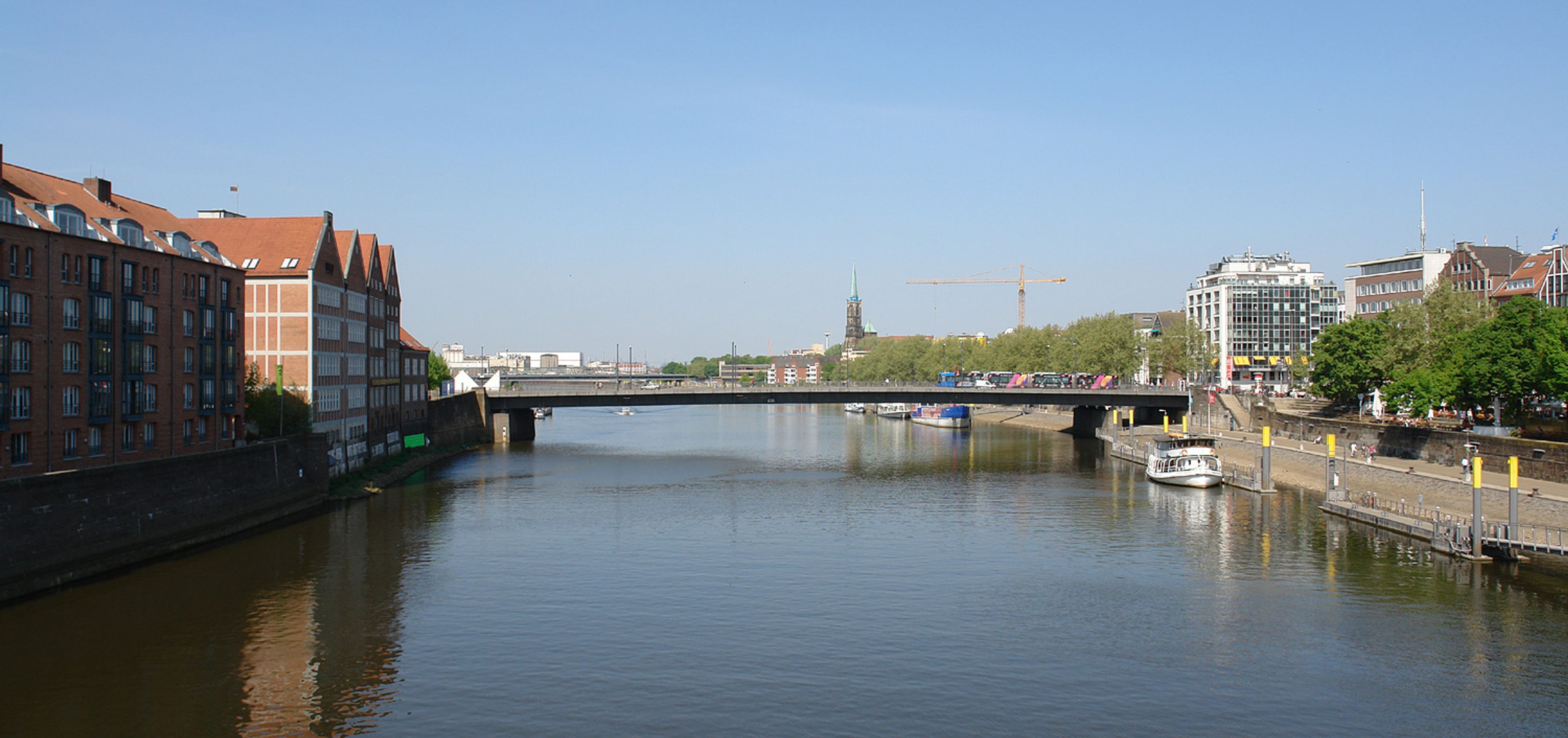 Il Bürgermeister-Smidt-Brücke si estende per 224 metri sul fiume Weser, collegando i distretti di Mitte e Neustadt con la sua costruzione in acciaio.