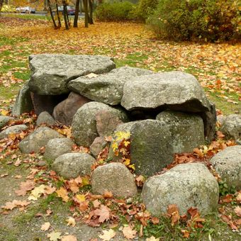 La pietra meridionale della cista presenta tre figure umane scolpite che mostrano somiglianze con le incisioni rupestri della Scandinavia meridionale.