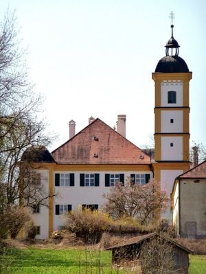 Schloss Kleeberg sorge sulla sua collina in Baviera, con numerosi ingressi al giardino e una cappella castellana nei suoi terreni.