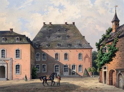 La dimora ricevette influenza architettonica da Johann Joseph Couven nel 1754, incorporando elementi del tardo barocco con parti in pietra azzurra.