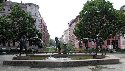 L'architetto Ludwig Hoffmann progettò la fontana originale nel 1902 per commemorare i pompieri, ma fu ricostruita nel 1981 dopo i danni bellici.