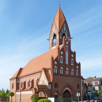 La chiesa Maria Rosenkranzkönigin mostra architettura neogotica con la sua costruzione in mattoni e si erge come struttura religiosa centrale.