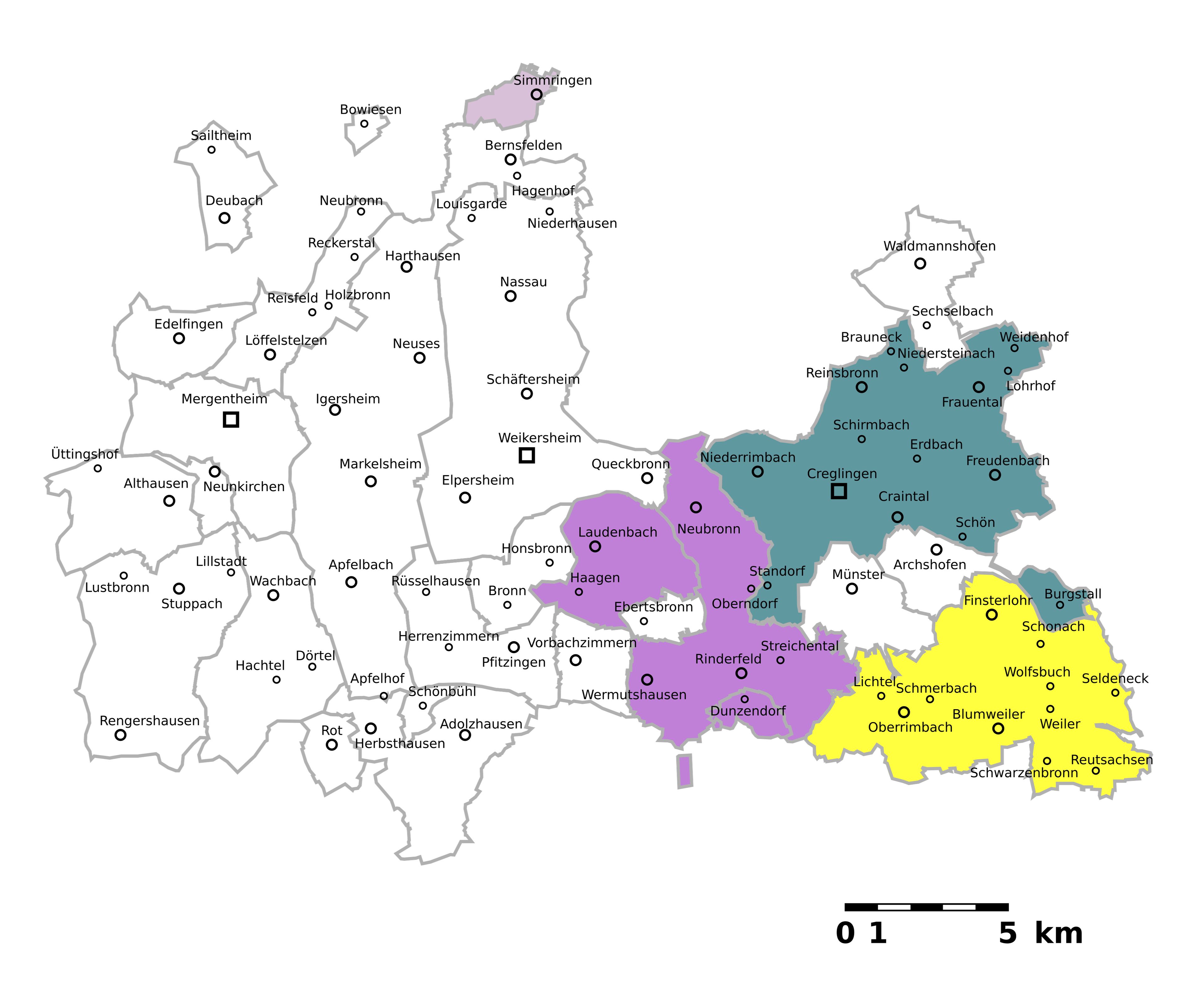 Il distretto includeva il comune di Edelfingen, che mantenne uno status speciale come condominio del Baden-Württemberg fino al 1846.