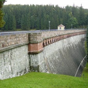 Il bacino mantiene una capacità di 0.325 miliardi di metri cubi, fornendo acqua potabile a Chemnitz attraverso un sistema di tunnel.