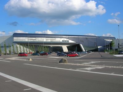 L'Edificio Centrale BMW collega le aree produttive attraverso nastri trasportatori sopraelevati che spostano le carrozzerie tra diverse sezioni del complesso.