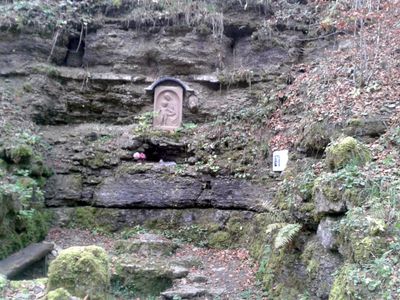 Marienbild in der Haßfurtschlucht, sacred image of a former Lady Chapel in the Haßfurt Gorge near Meiningen, Thuringia, Germany