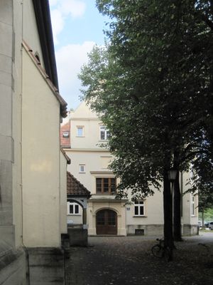 Evang.-Luth. Pfarrhaus der Christuskirche, deutsche Renaissance, 1899–1900 von Heilmann & Littmann, bildet mit der Kirche eine Gruppe