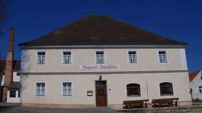 Brauereigasthof, zweigeschossiger Walmdachbau mit mittlerem Gurtgesims, um 1830/40