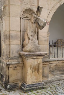 Unter dem Kreuz gefallener Christus, Sandsteinfigur, 1717