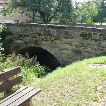 Schloss Unterschwaningen, einbogiger Sandsteinquaderbau, 18. Jahrhundert