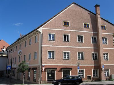 Stadtplatz 15, Bis 1861 Posthalterei, jetzt Wohn- und Geschäftshaus, dreigeschossiger achtachsiger Traufseitbau, Anfang 19. Jahrhundert, mit Kelleranlage aus dem 17.Jahrhundert