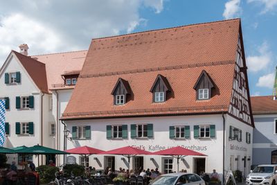 Town house, zweigeschossiger Eckbau mit Steildach und Fachwerkgiebel, 18. Jahrhundert