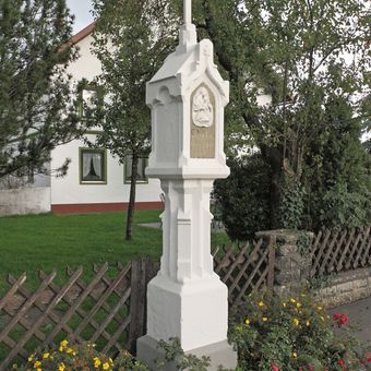 Bildstock, neugotischer Bündelpfeiler mit geschlossenem Gehäuse, Sandstein, 2. Hälfte 19. Jahrhundert