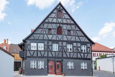 Synagogengasse 5, 1727–1918 Rabbinerhaus, Schule und Spital der jüdischen Gemeinde, zweigeschossiger, giebelst?ndiger Satteldachbau mit Fachwerkobergeschoss und -giebel und zwei Eingangstüren, 1707