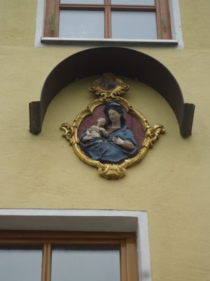 Relief, madonna mit Kind von Engeln umgeben, um 1750; am Wohnhaus