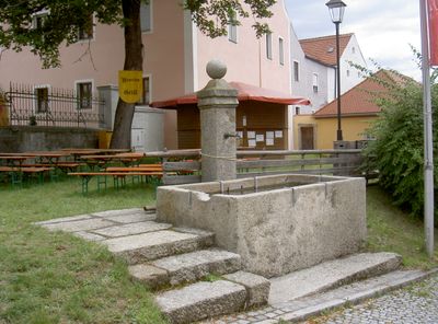 Rentamtsbrunnen, rechteckiger, schlichter Steintrog aus Granit, wohl 17./18. Jh., 2010 neu aufgestellt