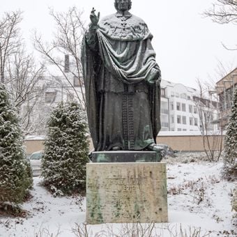 Pödeldorfer Straße 75, 1863 von Max Widnmann, ursprünglich auf dem Domplatz, dort 1938 entfernt, 1957 vor der Allgemeine Ortskrankenkasse in der Herzog-Max-Straße aufgestellt, 1985 an den jetzigen Standort verbracht