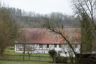 Taubertalweg 83, zweigeschossig mit steilem Satteldach, wohl verputzter Fachwerkbau, 15./16. Jahrhundert, Scheunenerneuerung bezeichnet „1893“