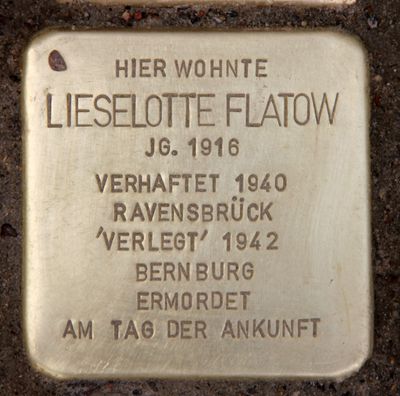 Stolperstein dedicated to Lieselotte Flatow, Stolperstein in Berlin-Charlottenburg