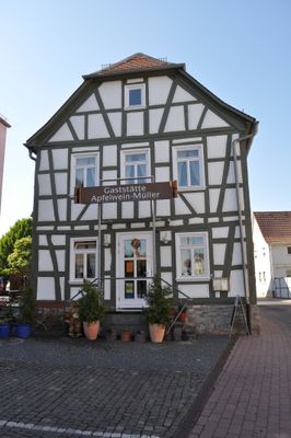 Giebelständiges, verputztes Fachwerkwohnhaus mit Satteldach