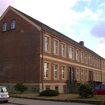 Musikschule Hoyerswerda, Schlichter lang gestreckter Klinkerbau mit Satteldach, ortsgeschichtlich von Bedeutung; älteste Schule Hoyerswerdas, zunächst Stadtschule, nach Sanierung seit 1989 Musikschule