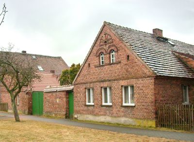 Bauernhof mit Wohnhaus, Seitengebäude und Scheune sowie Hofmauer Dorfaue 11, building in Hoyerswerda, Saxony, Germany